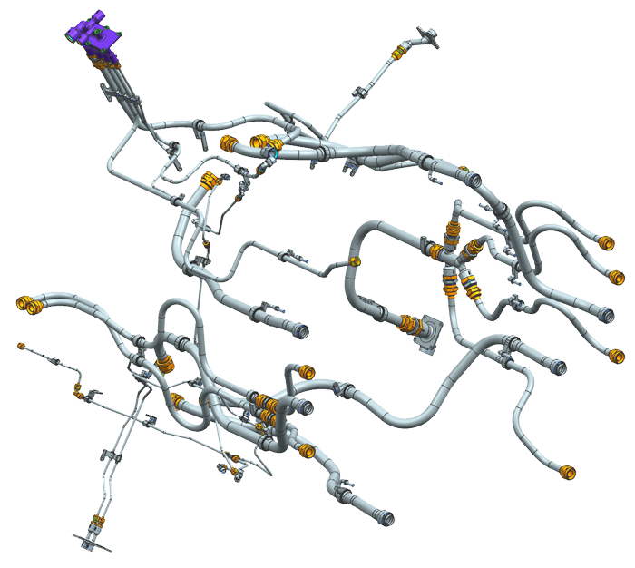 Бортовая кабельная сеть и трубопроводные системы опытной партии самолетов МС-21 спроектированы в импортном программном обеспечении E3.series компании Zuken с применением зарубежных комплектующих фирм Amphenol, Souriau, Glenair, Panduit, TE Connectivity и др. Одномоментно, как поставщики ПО, так и поставщики комплектующих в одностороннем порядке прекратили поставки и сервисную поддержку продукции.