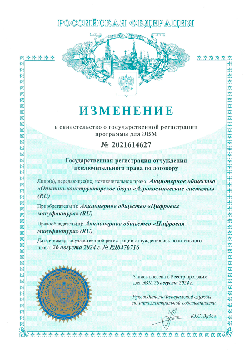 Изменение в свидетельстве о государственной регистрации программы для ЭВМ №2021614627